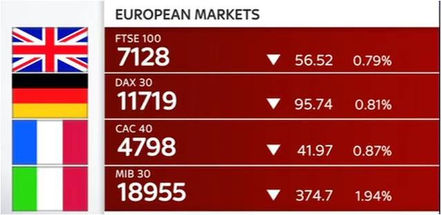 Bayanaat.net – سجلت مؤشرات الأسهم الأوروبية تراجعا خلال تداولات الاثنين وسط ارتفاع واسع النطاق لليور